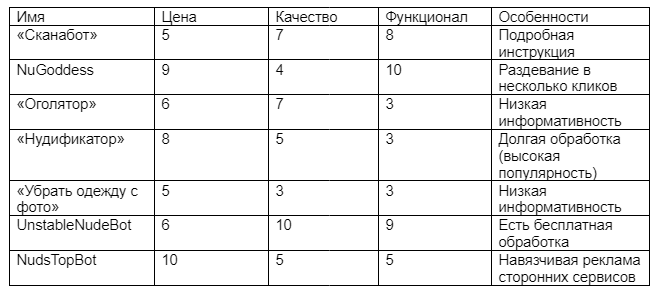 В интернете существует много раздеваторов с разным функционалом, качеством обработки и ценой. Среди них можно найти рабочий бот, который раздевает качественно и устраивает по всем важным параметрам. Главное — ориентироваться на нужный набор функций и соотношение цены и качества; остальные опции вторичны.