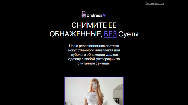 Разработчики утверждают, что UndressAI способна удалить одежду с любого человека. При входе на сайт требуется принять пользовательское соглашение. Интерфейс минималистичный, без рекламных блоков или отвлекающих элементов.