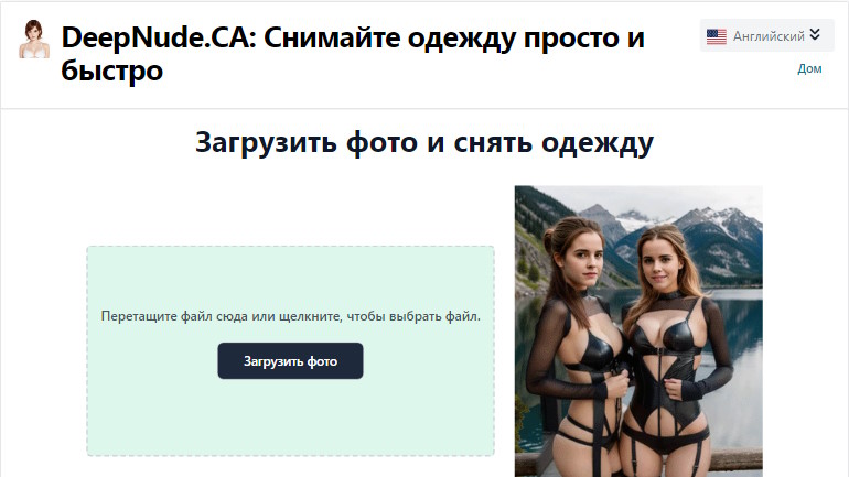 DeepNude.CA выделяется более приятным и понятным интерфейсом. Поддерживается русский язык, есть дополнительные опции: выбор купальников, костюмов или белья для генерации альтернативных образов.