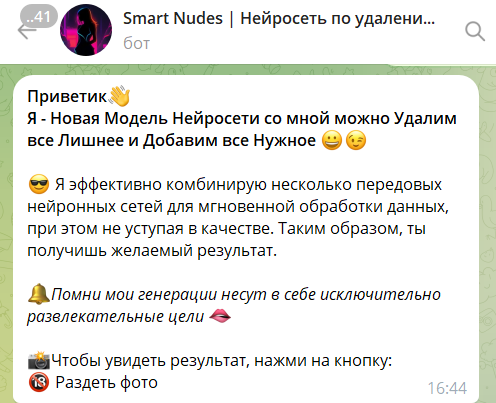 3. Smart Nudes — Telegram-нейросеть для «раздевания» людей