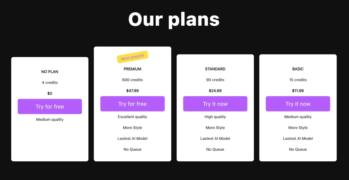 Undressing.io предлагает несколько тарифов для разных объёмов генерации. Если нужно большое количество изображений или более высокая скорость обработки, стоит выбрать один из платных планов: