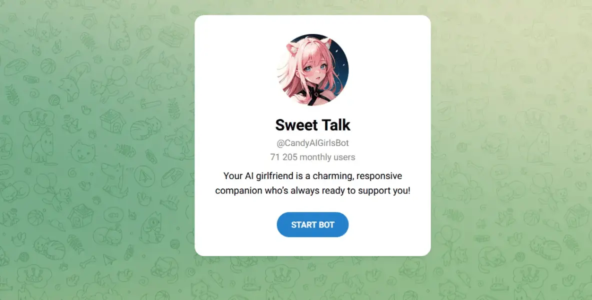 Большой плюс — бот удаляет историю переписки после каждой сессии, поэтому можно спокойно пробовать разные ролевые ветки без следов. Внутри реализовано мини‑приложение с быстрыми реакциями, меню персонажей и элементами уровней/ачивок, что делает разговор с ИИ‑девушкой более живым.