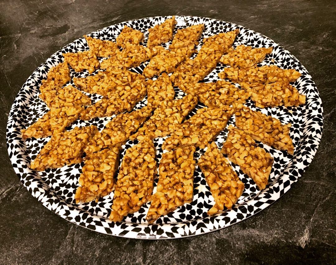 Гозинаки — популярный десерт в грузии на новый год. Делается из порубленных грецких орехов облитых медом которые сначала прожарили, а потом дали остыть.