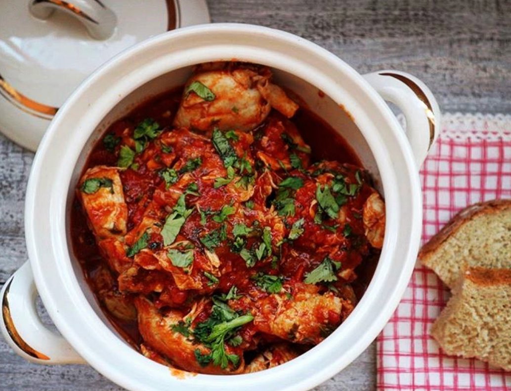 Грузинская кухня — чахохбили (традиционное рагу из птицы, замена фазана на курицу)
