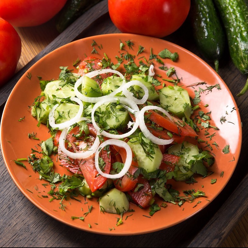 Салат из нарезанных огурцов и помидоров приправленный луком грецким орехом и базиликом по вкусу. В Грузии такой салат поливается Кахетинским маслом или же нерафинированным маслом.