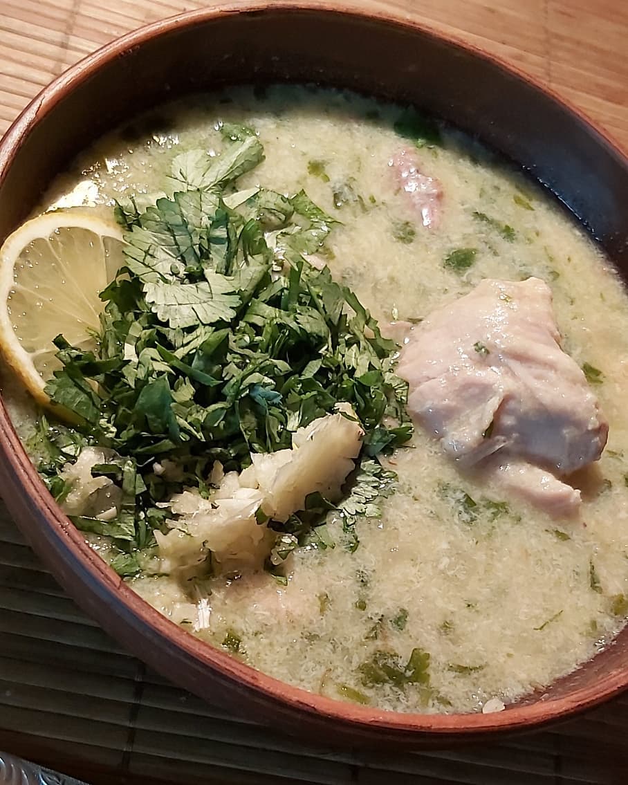 Грузинская кухня — чихиртма (куриный суп, концентрированный бульон с яйцами)