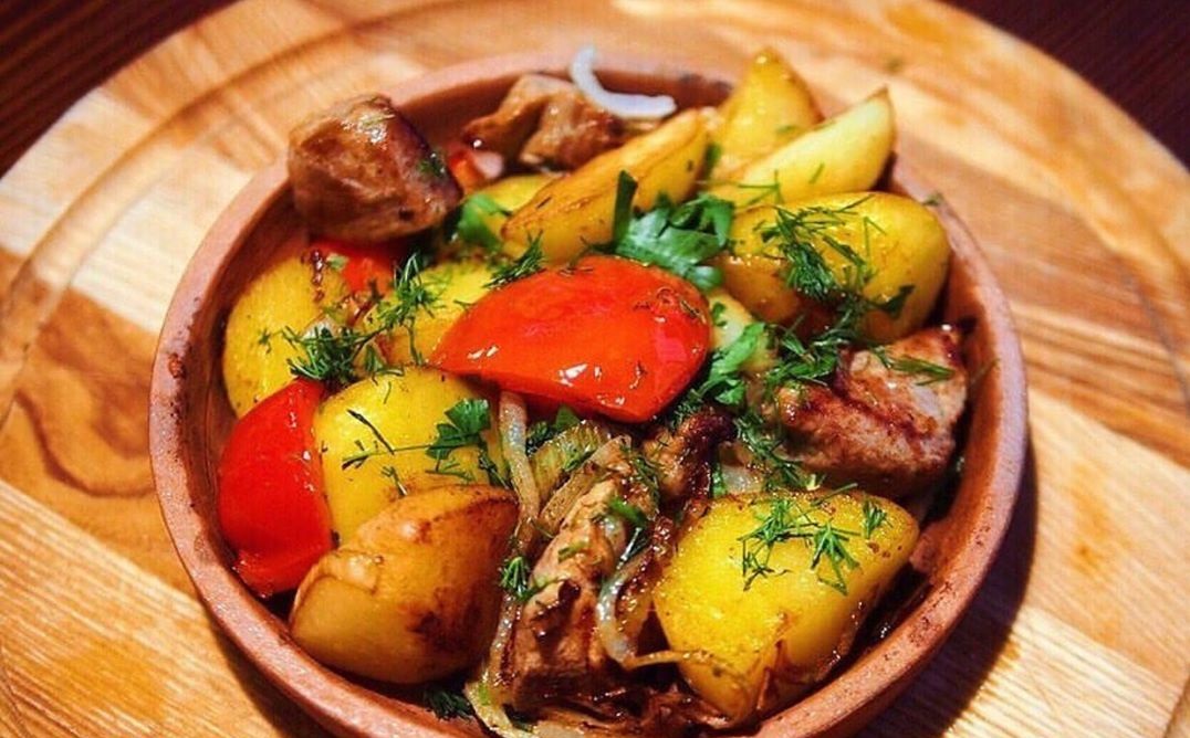 Грузинская кухня — оджахури (семейное блюдо: картошка и мясо в кеци)