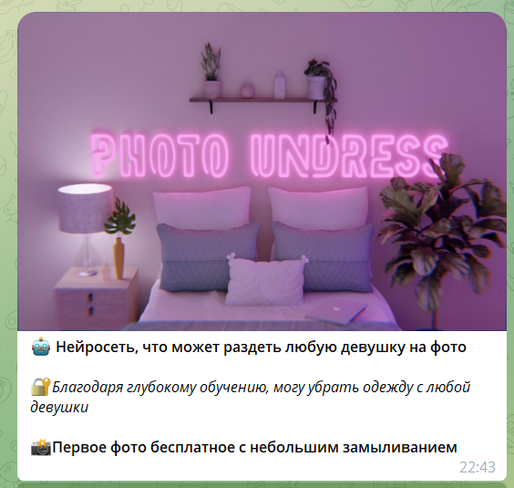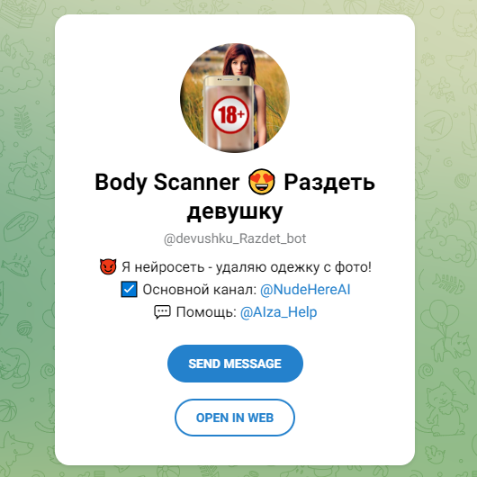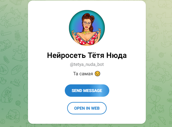 2. Telegram-бот «Тетя Нюда» для раздевания девушек