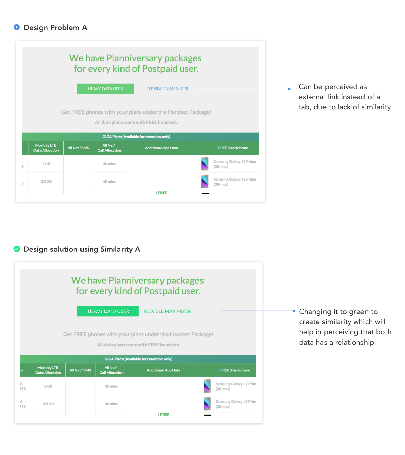 Принцип сходства подразумевает, что элементы, похожие по цвету, форме или типографике, воспринимаются как связанные. Применение этого принципа помогает пользователю быстро понять, какие элементы выполняют одинаковые функции.