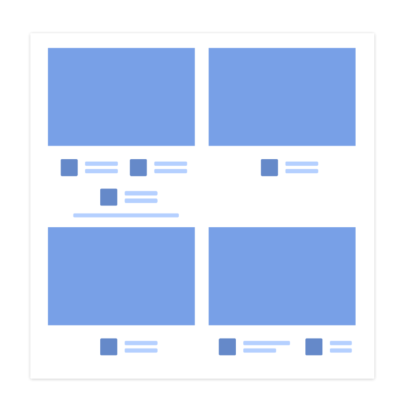 Рассмотрим практическую задачу: на странице представлены блоки с изображением, заголовком и ссылкой, но компоненты каждой группы находятся далеко друг от друга, выравниваются по разным осям и создают ощущение разрозненности.