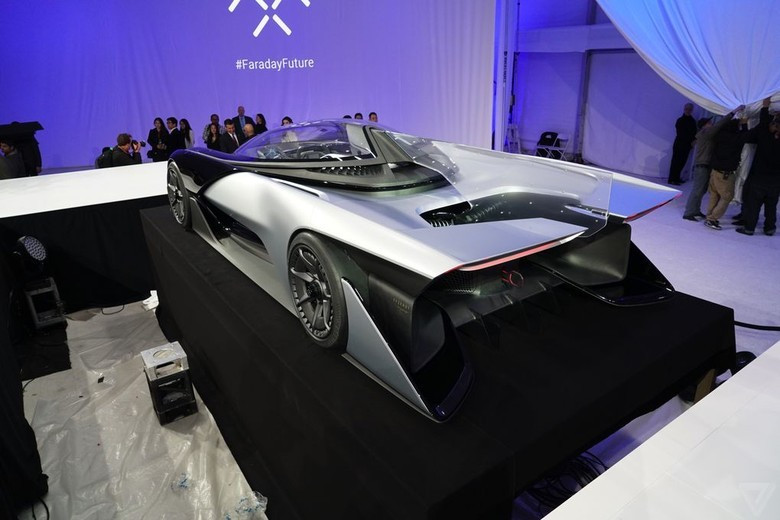 Электрокар Faraday Future FFZERO1 — концепт с разгоном до 100 км/ч за три секунды. Силовая установка включает четыре электродвигателя суммарной мощностью порядка 1000 л. с. Серийная версия FFZERO1 анонсировалась как планируемая к выпуску в ближайшие годы.