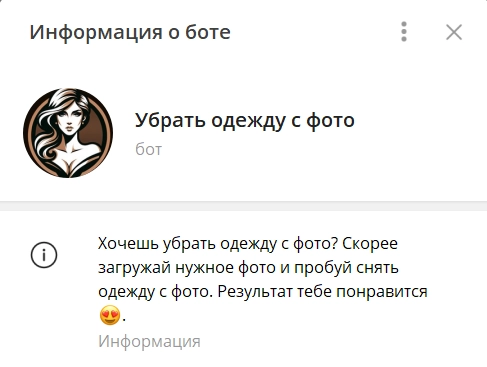 Телеграм‑бот «Нудификатор» — минималистичный бот для раздевания по фото