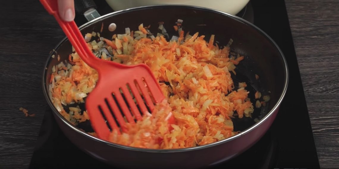 Приготовление зажарки — лук и морковь