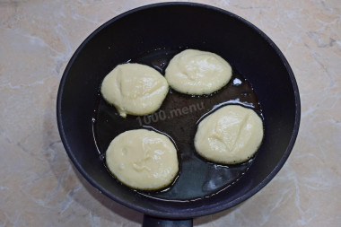 Шаг 6. На горячую сковороду налейте растительное масло и ложкой выкладывайте тесто (на фото видно, что тесто густое, не растекается). Готовьте оладьи на умеренном огне по 2-3 минуты с каждой стороны. Как выбрать правильную сковороду и масло для жарки читайте в отдельных статьях по ссылкам под шагами. Учтите, что техника и посуда у всех разная, поэтому силу нагрева именно вашей плиты для выбранной вами сковороды придется подбирать и регулировать самостоятельно.