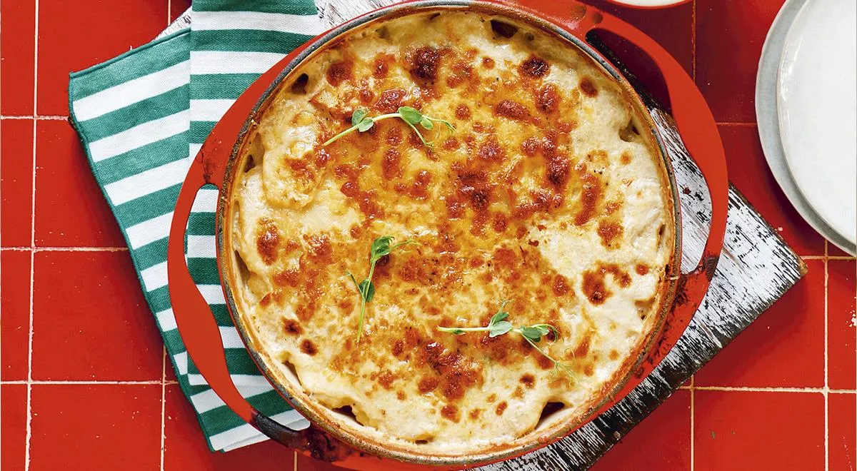 Разогрейте духовку до 180 °C. Смажьте жаропрочную форму маслом и свободно разложите гнёзда тальятелле, учитывая, что они увеличатся при запекании.