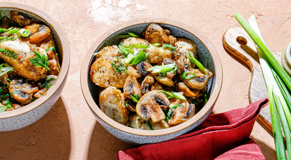 Куриная грудка с грибами на сковороде — простой рецепт сытного ужина за несколько минут. Блюдо бюджетное и требует минимального набора ингредиентов: куриная грудка, шампиньоны, чеснок, мука, растительное и сливочное масло. В качестве гарнира подойдут паста, рис, картофель или свежий салат.