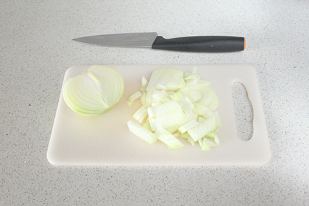 Шаг 3. Измельчаем лук для фарша