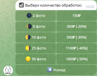 цена за раздевалку бота тг