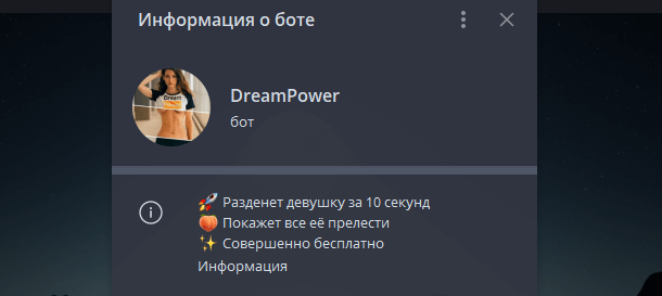 Dream Power — бот, который снимает нижнее белье с фото (первая генерация бесплатно)