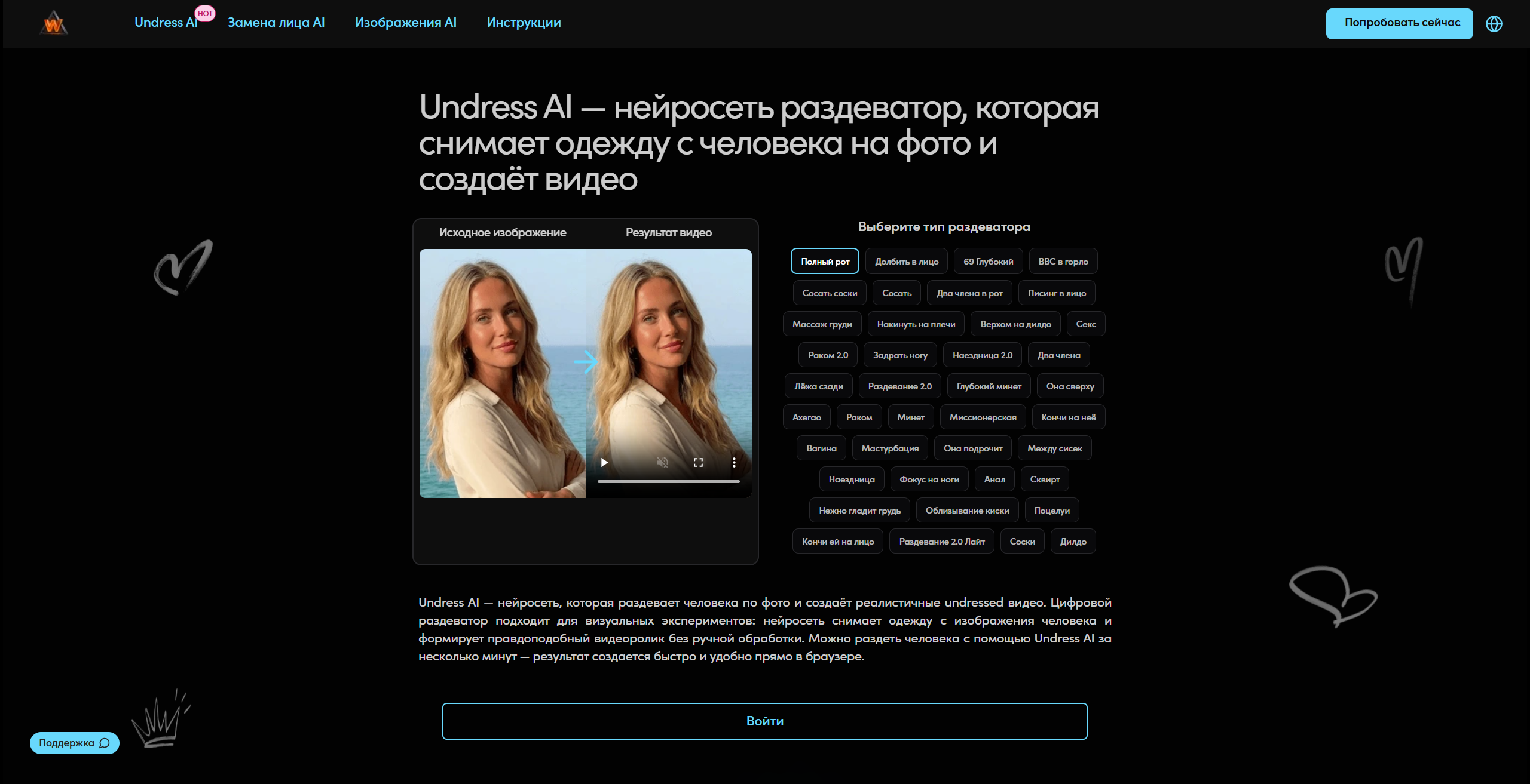Кому подходит: новичкам и всем, кто хочет быстро получить хентай ИИ онлайн из своего фото — без лишних настроек и с мгновенным результатом.
